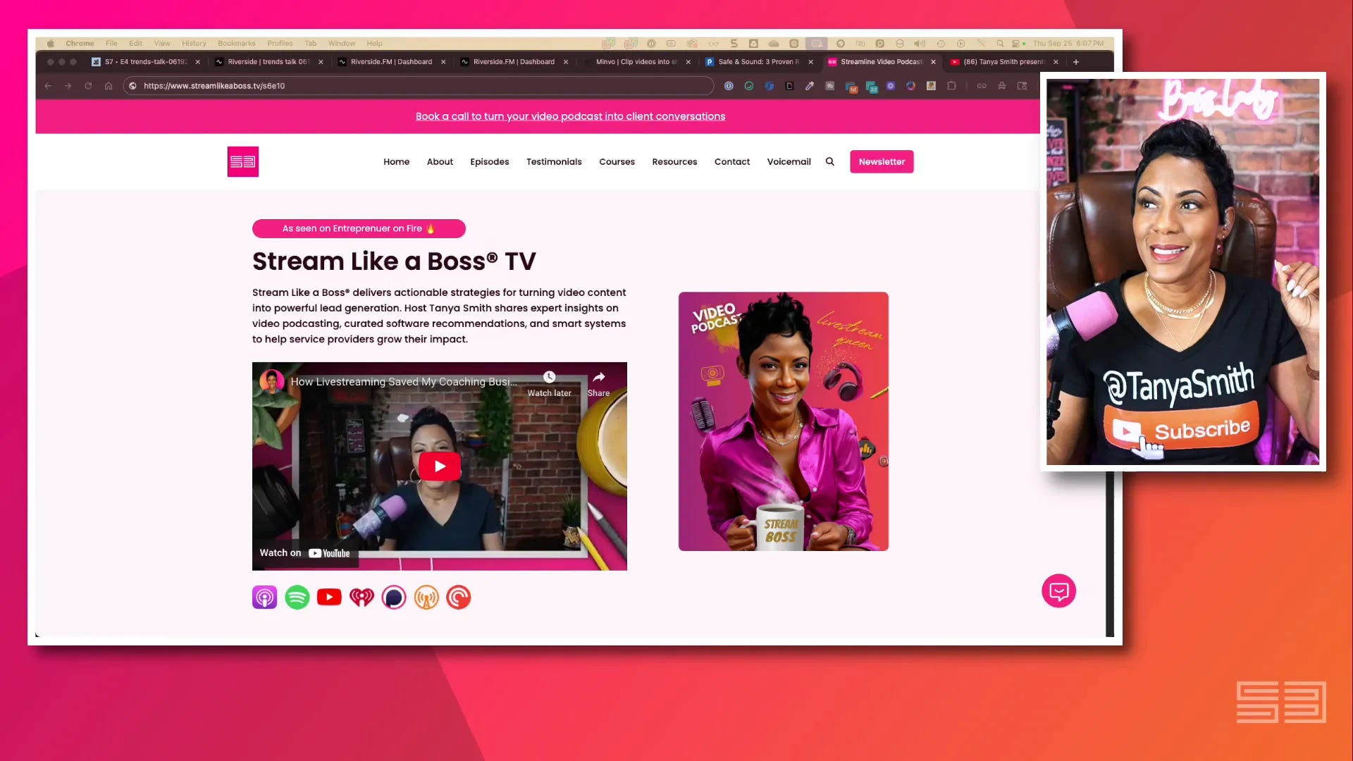 Tanya Smith is the CEO of Get Noticed with Video LLC and host of Stream Like a Boss® TV, where she helps podcasters and livestream creators turn crickets into clients—without chasing algorithms or losing their authentic voice. Through practical strategies and proven workflows, Tanya empowers creators to grow their audience, build authority, and monetize their message with confidence.