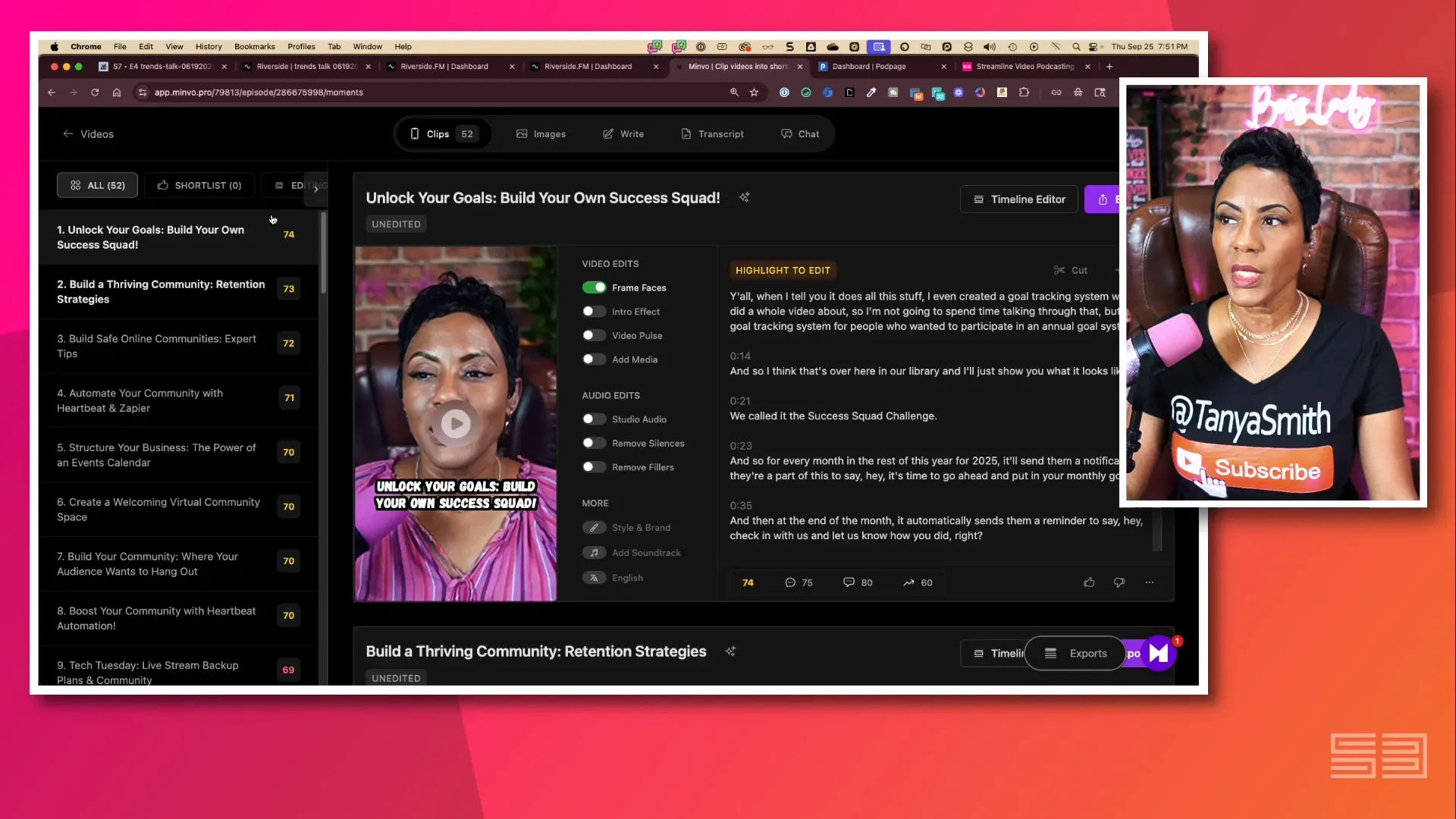 Visibility isn’t about going viral once; it’s about consistently delivering value where your audience spends time. For coaches and service providers, your content is your product. The workflow I laid out lets you keep the product fresh without getting buried in production tasks. Use Riverside for fast light edits, Cast Magic to transform your words into publishable written content, and Minvo/Opus to generate shareable clips. Couple that with a strict naming convention and you have a machine that turns one live conversation into a week (or more) of meaningful content.